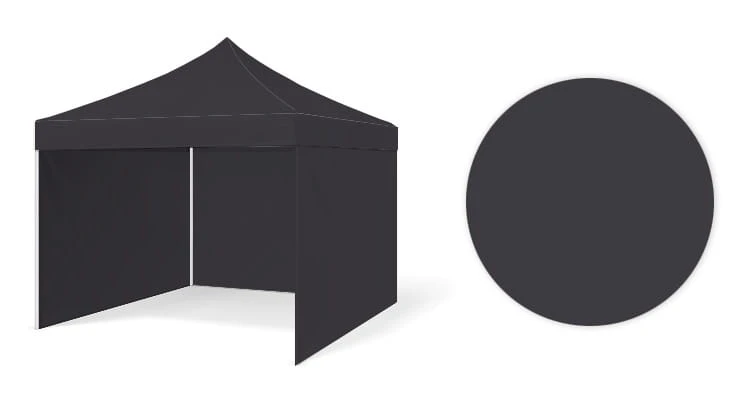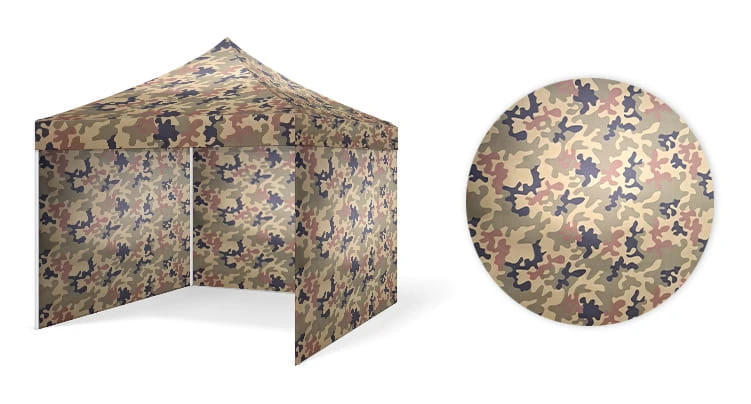 - Powłoka namiotu (poszycie górne) wykonana jest z impregnowanego poliestru DISCOVERY o gramaturze 235 g. Istnieje możliwość nadruku indywidualnej grafiki na materiale,