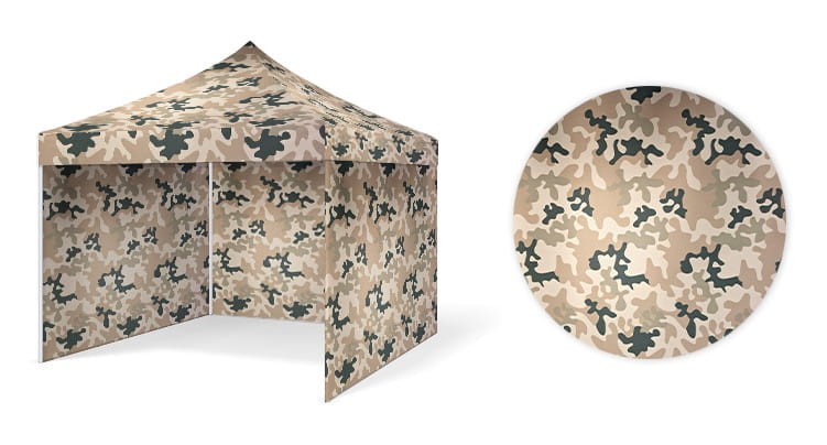 - Powłoka namiotu (poszycie górne) wykonana jest z impregnowanego poliestru DISCOVERY o gramaturze 235 g. Istnieje możliwość nadruku indywidualnej grafiki na materiale,